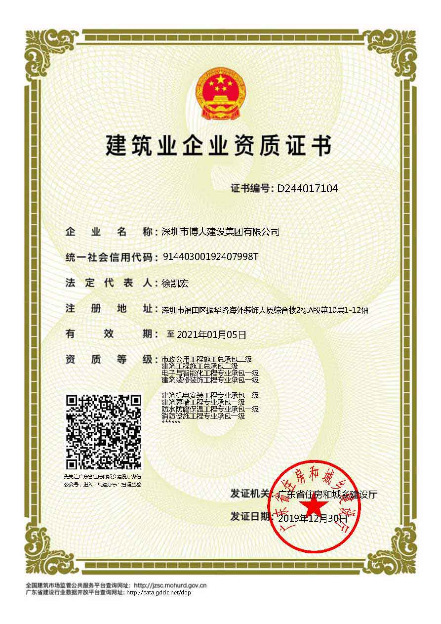 博大建設(shè)集團作為行業(yè)最具發(fā)展活力的領(lǐng)軍企業(yè),近年來發(fā)展速度迅猛,2019年繼續(xù)保持穩(wěn)步增長,業(yè)績過百億。在各級領(lǐng)導的關(guān)懷和全體家人的共同努力下,集團資質(zhì)建設(shè)取得新的進展,榮獲6項建筑資質(zhì),具體如下: