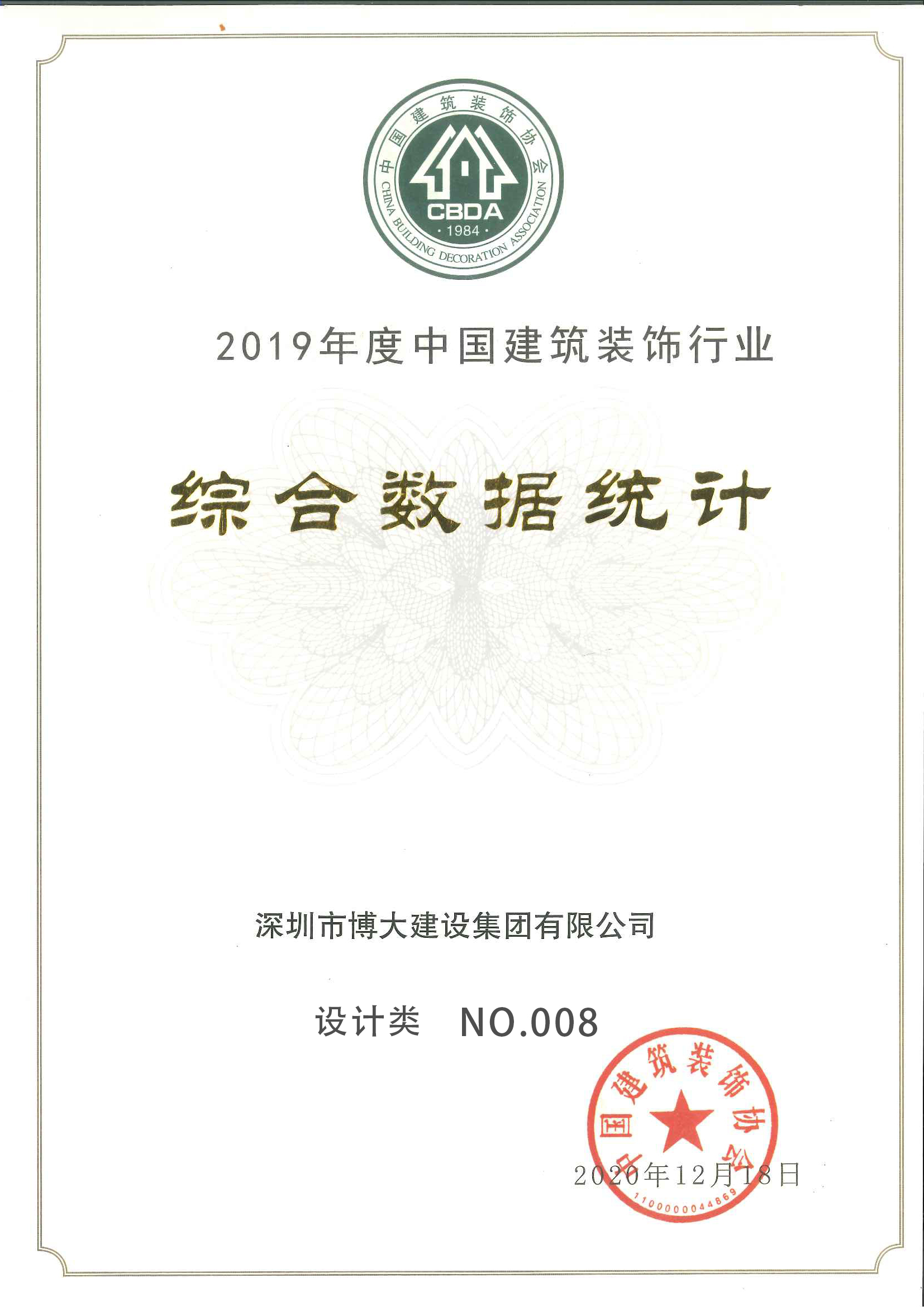 2019年行業全國排名裝飾類第五名