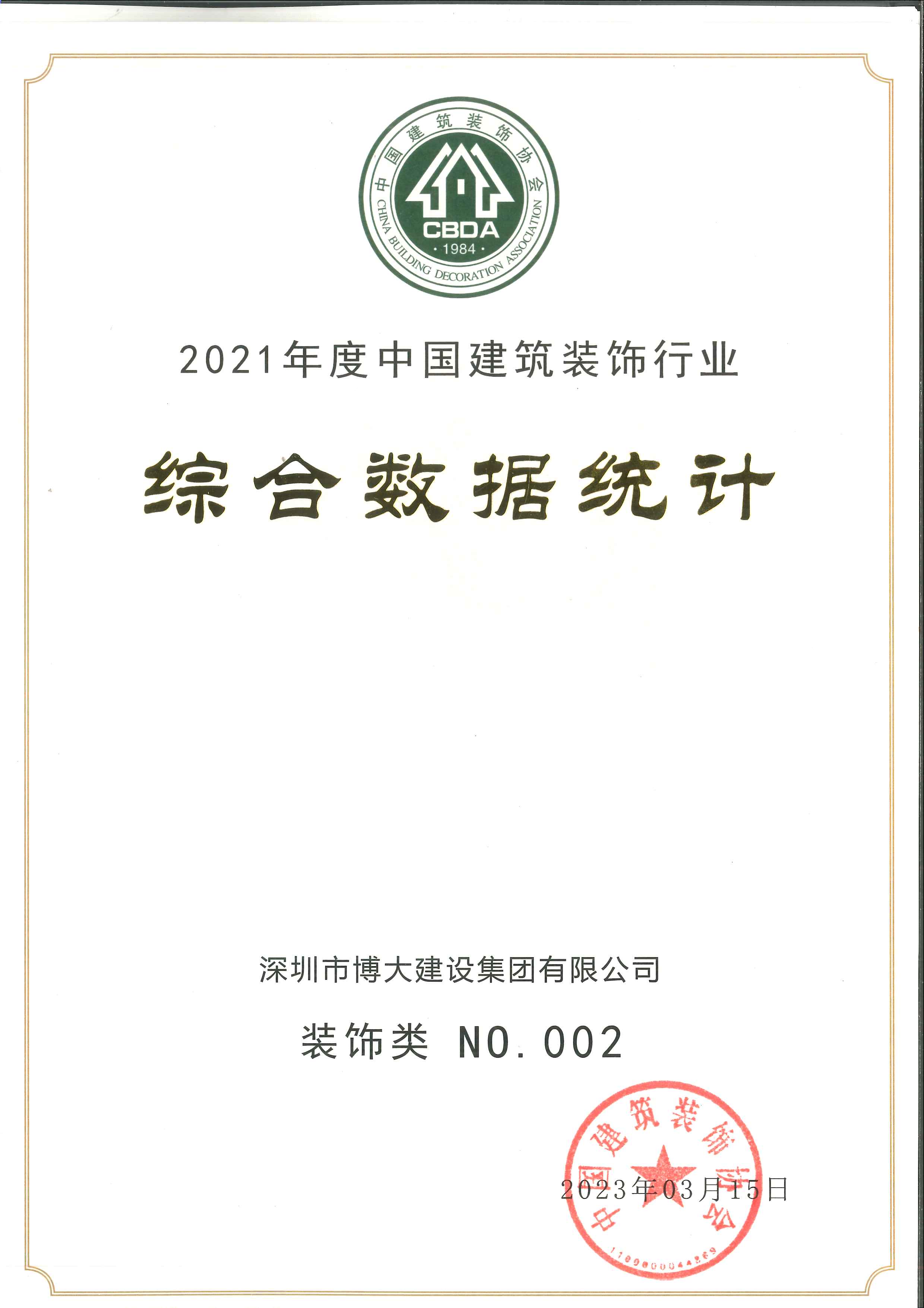 2021年度中國建筑裝飾行業百強裝飾類第二名