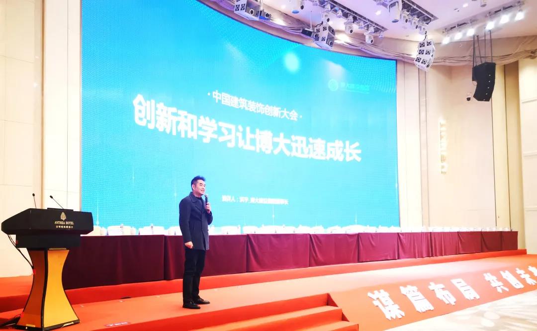 “創新和學習讓博大迅速成長。今天,我主要從三個方面為大家分享:管理模式創新,建立了利益共享的合伙人機制;文化創新,打造正能量的企業文化;持續學習,不斷地掌握和運用新的策略、工具和方法?!辈┐蟪蔀楸敬稳珖袠I排名發布大會唯一一家建筑裝飾企業上臺分享發展經驗。董事長洪宇的精彩演講引起現場企業家的熱烈反響。